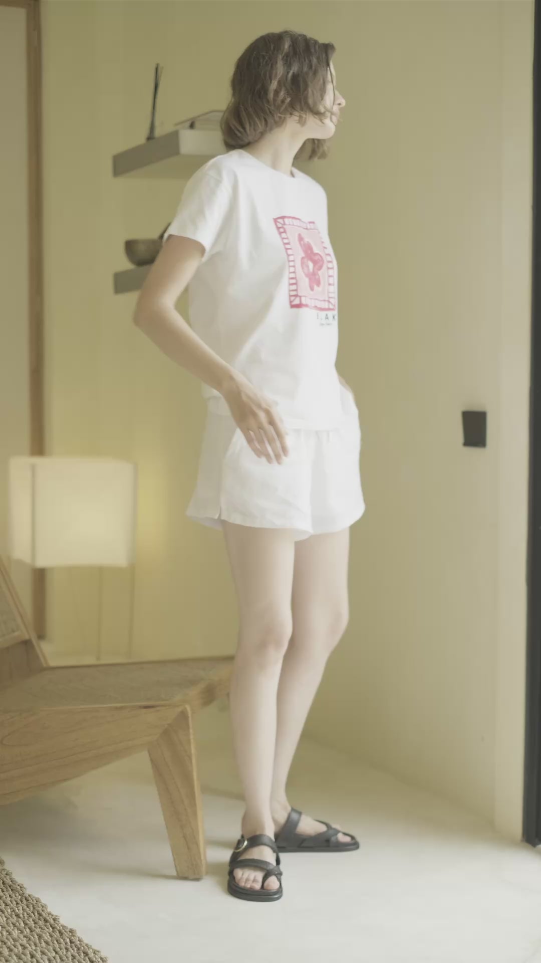 The Say So Tee in White with a stunning Pink/Red Peppa Hart Flower print is a classic tee shape made from organic bamboo t'shirting fabric. It features an 8mm bound neckline and a keyhole back with a button closure for added flair. This tee is truly unique with an exclusive Peppa Hart print on the front, it will be your go-to tee for summer.